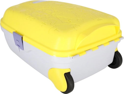 Det hårde plastskalleskab, den lave vægt på 2,2 kg og det udtrækkelige teleskophåndtag sikrer komfortable og sikre rejser for små eventyrere.