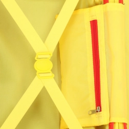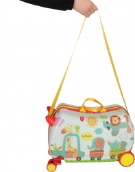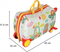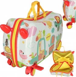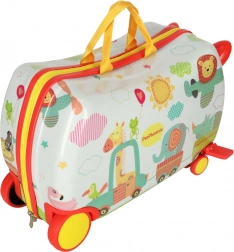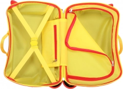 Det robuste plastkorpus, bæreevne op til 20 kg og integrerede fodstøtter gør det nemt for barnet at sidde og blive trukket – ideelt i lufthavne og på stationer. Indersiden i klar gul farve giver et legende udtryk og bedre overblik over indholdet.