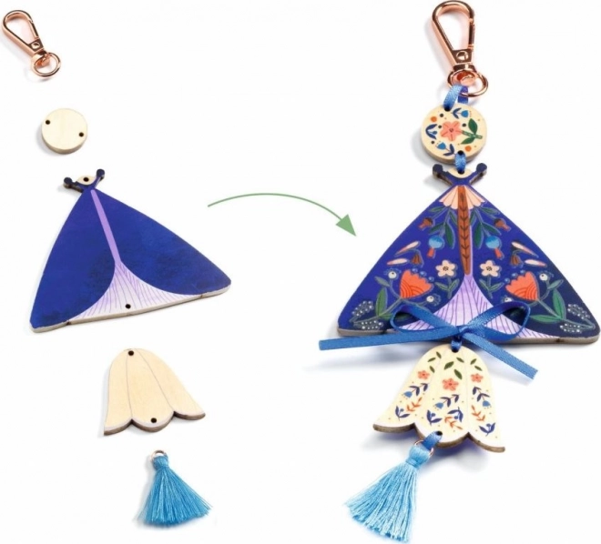 Skab dine egne magiske vedhæng formet som sommerfugle med det kreative sæt fra DJECO. Sættet tilbyder mere end 100 overførsler og tilbehør, nem lukning med krog og trin-for-trin instruktioner for ubesværet kreativitet. Når du er færdig, får du en stilfuld dekoration til taske eller nøgler lavet af FSC®-certificeret træ.