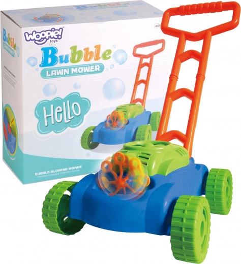 Denne farverige boble-græsslåmaskine fra WOOPIE forvandler enhver eftermiddag i haven til sjov. Takket være automatisk bobleblæsning og realistisk hjulraslen kan børn let efterligne de voksnes arbejde, mens de træner balance og koordination. Det stabile håndtag gør skub og styring nemt.