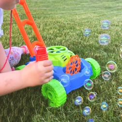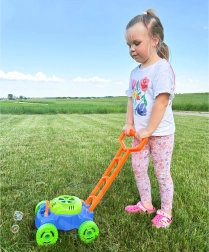 Græsslåmaskinen efterligner raslen fra en rigtig maskine, tilføjer boblelyde og spiller en eventyrmelodi for maksimal underholdning.