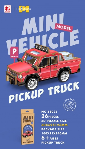 Forkæl dig selv med en fantastisk oplevelse ved at samle dette 3D træpuslespil Pickup. Denne detaljerede model er fantastisk for børn fra 6 år og ældre, hvilket gør den til en ideel måde at forbedre motoriske færdigheder og tålmodighed. Puslespillet består af 26 præcist udskårne dele og giver timevis af sjov.