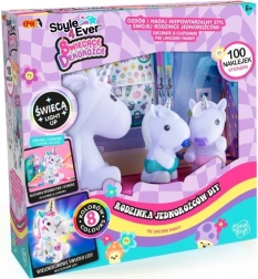 Sæt med lysende dekorationer - gør-det-selv enhjørningefamilie
