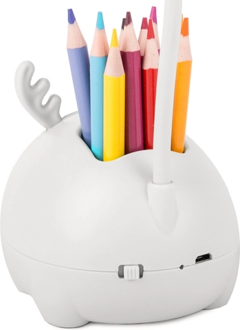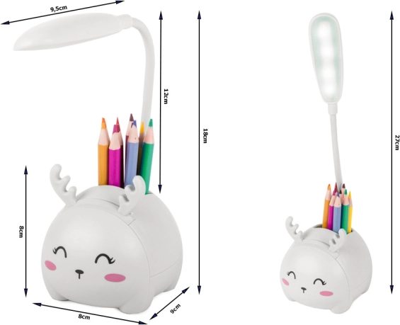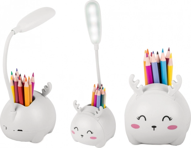 Denne multifunktionelle LED-natlampe til børn forvandler arbejds- og hyggehjørnet til et hyggeligt og ryddeligt sted. Med den integrerede organizer til skriveredskaber og telefonholder har du alt lige ved hånden, mens den fleksible arm med LED-lys kan rettes præcist derhen, hvor det behøves. Den behagelige overflade, sikre udførelse og USB-strøm gør den til et perfekt valg til daglig brug.
