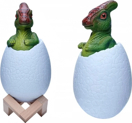Den detaljerede dinosaur, der titter ud af et sprækket æg på en træfod, pynter ethvert børneværelse og stimulerer små opdagelsesrejsendes fantasi.