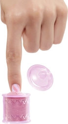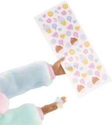I pakken finder du mere end 15 overraskelser, inklusive selvklæbende negle, fil og neglelakker. Hver dukke har sit eget tema-studie. Du kan pynte neglene efter din smag med klistermærker og glimmer.