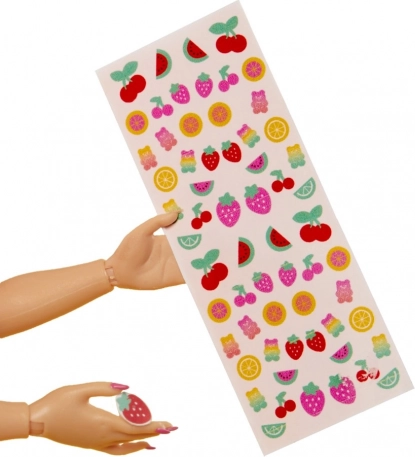 Indeni venter mere end 15 overraskelser: smart outfit, sko, smykker, dukkestander og neglesalonstilbehør – fil, 2 sæt selvklæbende og aftagelige negle, glimmer samt 2 flasker “lak”. Det hele i et legende frugtigt tema, der fremmer kreativitet og udvikler finmotorikken.