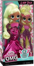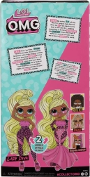 Dukken L.O.L. Surprise! O.M.G. Lady Diva bringer luksuriøs stil, glitrende detaljer og et markant rosa look, der fanger opmærksomheden med det samme. Takket være de bevægelige led er hun perfekt til posering og fotografering, mens det rige udvalg af tilbehør understøtter kreativt mix & match af outfits.