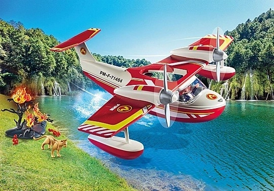 Eksklusivt PLAYMOBIL brandfly med brandslukningsfunktion. Det flyder på vandet og har sæde til en pilot. Med genopfyldelig vandtank og brandslukningsfunktion. Mål: 30 x 40 x 10 cm
