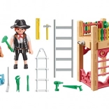 Dette er et ideelt legesæt til legepladsen, hvor den kvindelige tømrer flittigt passer sit arbejde og dygtigt samler elementerne. Den lille dreng kan næsten ikke vente med at begynde at lege. De unikke Starter Packs fra PLAYMOBIL opfordrer børn til at udforske forskellige legeuniverser. Sættene indeholder figurer med tilbehør, der kan samles meget hurtigt, så legen kan begynde med det samme. Miljøansvar: legesættet er fremstillet af mere end 80 % miljøvenlige materialer, herunder genanvendte og biobaserede plasttyper.