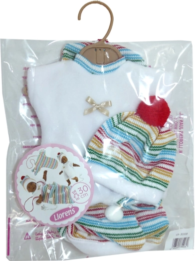 Llorens 3-delt outfit til babydukke 30 cm med transporttaske. Håndlavet i Spanien, høj kvalitet. Ideelt til børn fra 3 år.
