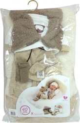 Forkæl din NEW BORN-dukke med et tidløst look og maksimal komfort. Dette 5-delte sæt er gennemtænkt ned til mindste detalje – fra de bløde materialer til den vendbare pude, som fungerer glimrende som underlag både til leg og udstilling af dukken. Takket være den håndlavede produktion i Spanien kan du regne med omhyggelig finish og lang holdbarhed.