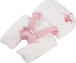Den bløde måtte med dekorativ sløjfe og sikre stropper fungerer som en praktisk stol til stabil placering af dukken.