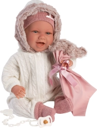 Dette elegante sæt udvider mulighederne for leg med NEW BORN-dukker på 40–42 cm. Tøjet med fine detaljer og den praktiske måtte med sløjfe og stropper gør det muligt at sætte dukken behageligt som på en stol, hvilket giver børnene mere sjov og realisme i legen.