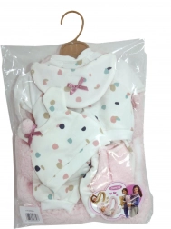 Det praktiske sæt indeholder alt, hvad der er brug for til stilfuld påklædning af en babydukke i størrelsen 38 cm. Et fantastisk grundlag for dukkegarderoben.