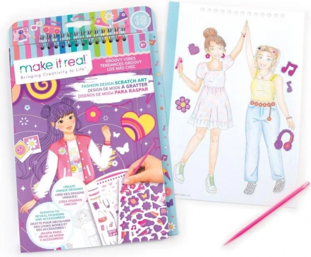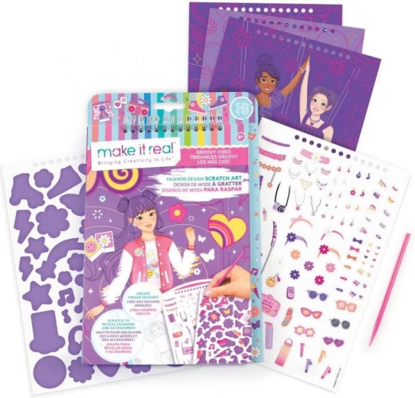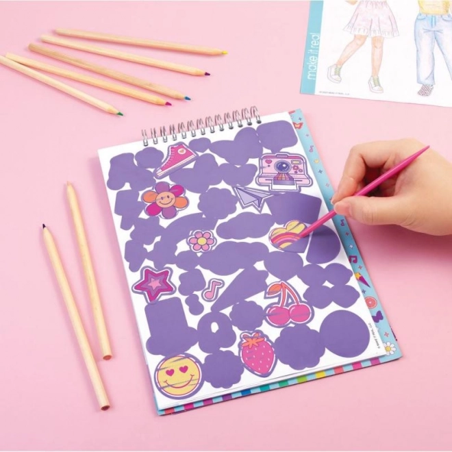 Hvem elsker ikke skrabekunst og mode? Vi har kombineret begge dele i ét! Skrab for at afsløre det underliggende print af modeillustrationer. Klassiske malebøger med figurer og klistermærker fuldender det samlede designudtryk.