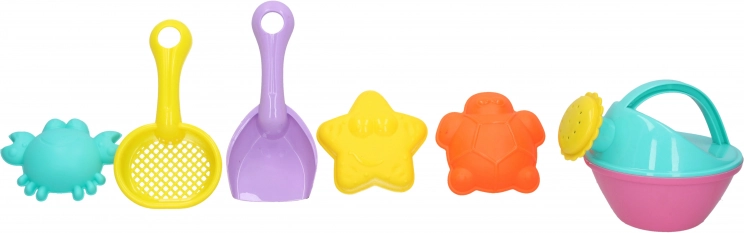 Sandsæt med vandkande tilbyder alt, hvad der behøves for sjov i sandkassen. Indeholder en vandkande, si, skovl og tre forme – ideelt til små børn.
