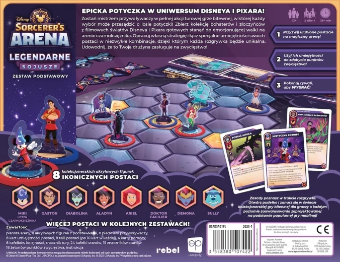 Saml en trup af helte og skurke fra Disney- og Pixar-film og bliv en mester-tilkalder i den nervepirrende kamp i Sorcerer’s Arena! Disney Sorcerer’s Arena: Legendary Alliances er et actionfyldt, turbaseret kampspil for 2 eller 4 spillere, hvor hvert valg kan afgøre udfaldet af opgøret! Udarbejd din egen strategi og kombiner dine figurers særlige evner i uventede sammensætninger, så hver spiloplevelse bliver unik. Kan du sammensætte et hold, der overgår dine modstandere og fører dig direkte til sejr?