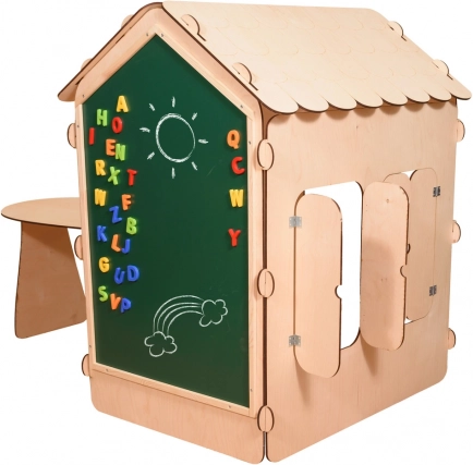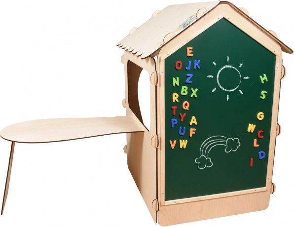 Legehuset indeholder en stor magnet- og kridttavle til lærende lege med mange bogstaver.