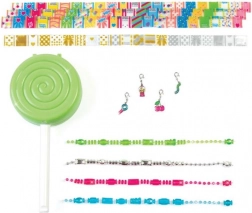 - Opbevaringsboks formet som slikkepind, 4 perlearmbånd, 4 vedhæng, 84 stykker krympefolie, instruktioner