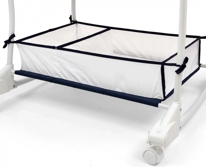 Vuggen er udstyret med hjul for nem mobilitet i hjemmet, og takket være de kompakte mål kan den let flyttes til andre steder.