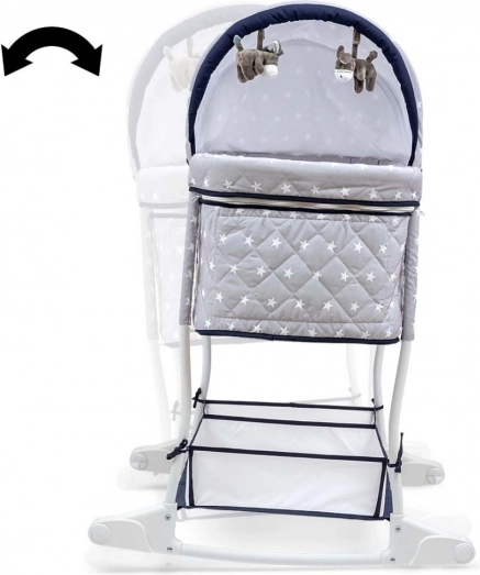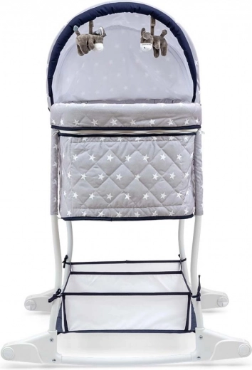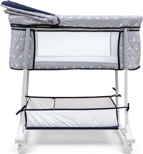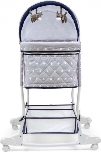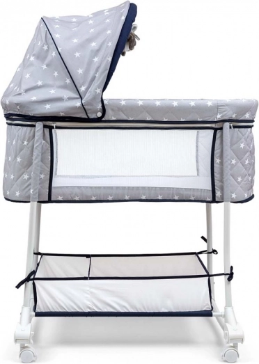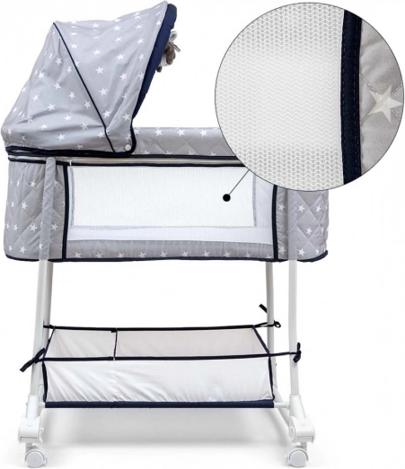 Vuggen Dream On 2-i-1 opfylder moderne forældres behov takket være sin praktiske anvendelighed og komfort. Den robuste metalramme sikrer produktets holdbarhed og modstandsdygtighed. Den kompakte størrelse på vuggen øger nyfødtes tryghedsfølelse og giver samtidig optimal plads til søvn. Høje sidevægge med net for luftcirkulation bidrager til en bedre søvn og nem kontrol af barnet.