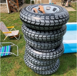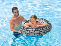 Vi tilbyder et stilfuldt oppusteligt hjul i dæksform, ideelt til afslapning og sjov i vandet. Produktet imponerer med sit realistiske slidbanemønster og kontrastfarver, som giver det en unik karakter. Det er et fremragende valg til både pools, strande og søer.