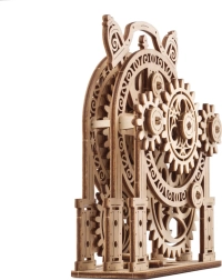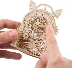Saml et nostalgisk, dekorativt vækkeur af naturtræ og nyd den unikke kombination af underholdning, læring og design. Modellen udmærker sig med rige ornamenter, realistisk visergang og en blid klapren fra de svingende klokker. Takket være den lave sværhedsgrad er den velegnet til både begyndere og unge konstruktører fra 14 år.