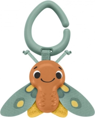 Praktisk klips til nem fastgørelse på barnevogn eller taske. Varierede materialer, knitren og farver stimulerer sanseudviklingen også uden for hjemmet.
