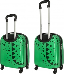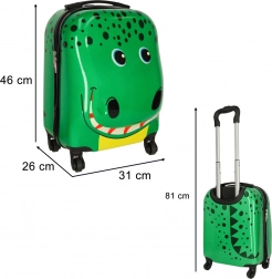 Denne lette og robuste børnekuffert er ideel som håndbagage. Den blanke, grønne overflade med en munter krokodillegrafik tiltaler børn, mens forældre vil sætte pris på det praktiske udstyr til behagelig rejse.