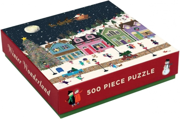Saml det malede billede af en snedækket lille juleby. På puslespillet med 500 brikker finder du Julemanden, hans rensdyr, et højt juletræ og mange glade byboere. At lægge puslespillet vil helt sikkert skabe den rette højtidelige stemning hjemme hos jer! Galison-puslespil er fremstillet med en betydelig andel genbrugspapir og har førsteklasses tryk med ugiftige farver. De er forsynet med en mat overfladebehandling, som under alle omstændigheder sikrer trofast gengivelse af detaljer og farver. Bagsiden er belagt med en glat, behagelig overflade, som forhindrer støvdannelse, når det halvlagte puslespil opbevares. Sammen med de omhyggeligt pakkede brikker finder du i kassen også et foldet ark med et referencebillede, som ofte indeholder yderligere information om skaberne og værkets baggrund. Leveres i en usædvanligt robust og iøjnefaldende kartonæske, fremstillet af genanvendt karton og bæredygtigt indvundne materialer med FSC®-certificering. Vigtigste egenskaber: 500 præcist udstansede brikker fremstillet med brug af genanvendte og bæredygtigt indvundne materialer omhyggeligt udvalgt motiv fra anerkendte skabere og kunstnere tryk og udførelse i topkvalitet indeholder referencebillede