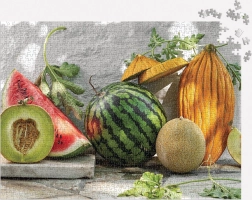 Vi præsenterer et puslespil, der med hver brik bringer dig tættere på sommersolen og de naturlige farver i det middelhavske landskab. Galison puslespil Meloner fra vinstokke 1000 brikker er et kunstværk, du kan beundre hver dag i dit hjem.