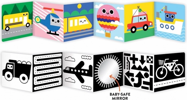 Den dobbeltsidede bog med spejl fra Mudpuppy er en ideel hjælper til at støtte den visuelle udvikling og dit barns fantasi. Takket være designet kan bogen stå af sig selv, hvilket gør den perfekt til stunder på maven. Indeni er der et sikkert spejl, som inviterer børn til visuel udforskning og sjov opdagelse af verden omkring dem.