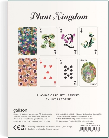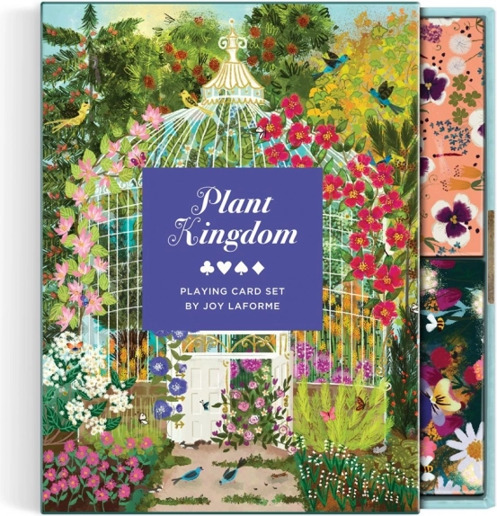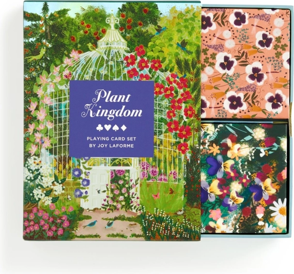 Sæt af spillekort Planteverdenen fra Galison kombinerer naturens skønhed med Joy Laformes kunstneriske touch. To pakker kort med unikke motiver af blomster og haver, der trækker dig ind i en verden fuld af farver og harmoni. Kortene ikke kun fascinerer med deres skønhed, men de bringer også glæde ved hvert spil.