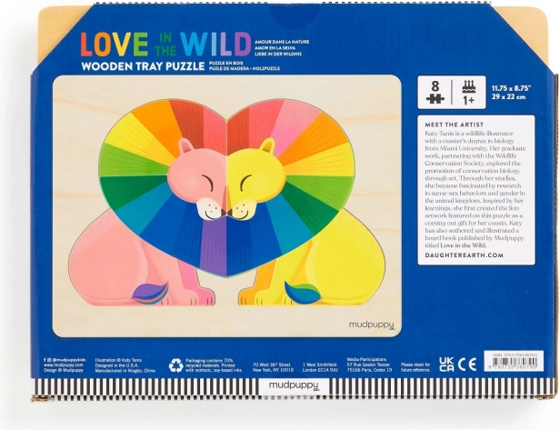 Træpuslespillet Kærlighed i vildmarken fra Mudpuppy giver ikke kun børn underholdning, men også indsigt i kærlighed og mangfoldighed gennem ikonisk kunst med regnbueløver.