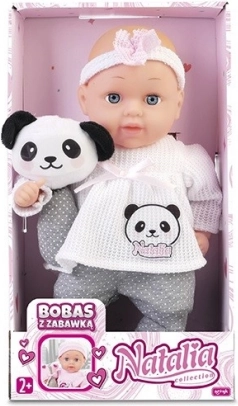 Leder du efter den første dukke, der vil vinde dit barns hjerte? Babydukken NATALIA 33 cm har en blød og behagelig krop, der indbyder til kram, og kommer med et sødt legetøj for endnu sjovere leg. Det stilfulde outfit og de fine detaljer virker realistiske og fremmer naturligt empati og omsorg.