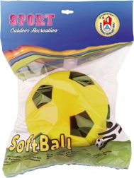 Denne gule skumbold med fodboldmønster giver både børn og voksne masser af sjov uden bekymring for skader eller at noget går i stykker. Den lette skum dæmper stød, så den passer til stuen, børnehaven og gymnastiksalen. Med en diameter på 19,4 cm ligger den godt i hånden og er velegnet til de første kast, greb og enkle boldlege.