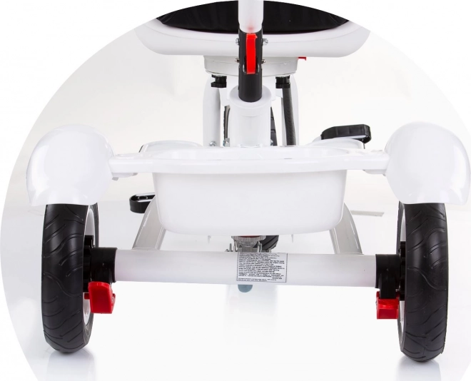 Sikkerhedsseler med bløde polstrede puder, beskyttelsesbøjle og skærm over forhjulet beskytter den lille rytter. Det brede polstrede sæde og kalechen med solskærm sikrer komfort i al slags vejr.