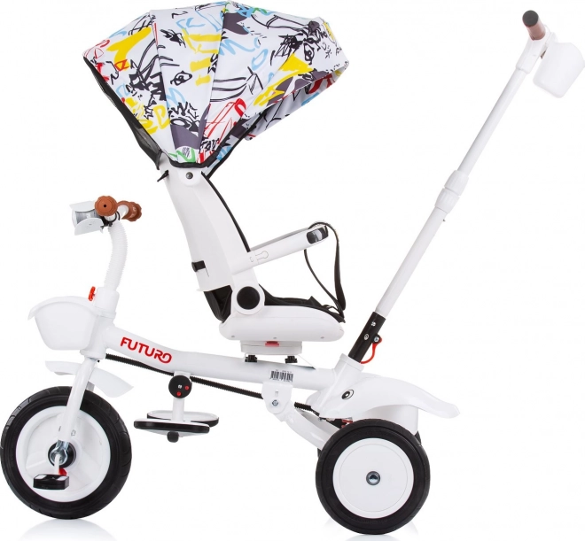 Den trehjulede cykel Chipolino Futuro 2-i-1 tilpasser sig barnets og forældrenes aktuelle behov. I tilstanden med forældre-styring får du fuld kontrol; senere kan man skifte til selvstændig pedalkørsel. Sædet kan drejes med eller mod kørselsretningen og tilbyder også 2 hældningspositioner for større komfort på længere ture.