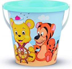 En sød og robust spand med glade billeder af en bjørn og en tiger ledsager børn ved leg på stranden og i sandkassen. Takket være de kompakte mål ligger den godt i hånden og er nem at bære, mens det solide håndtag sikrer komfortabel transport af vådt sand eller vand.