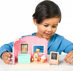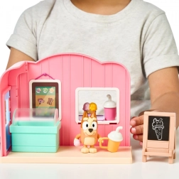 Mini Isbutik Bluey er et legesæt, der gør det muligt for børnene at leve sig ind i Blueys verden. Dette sæt indeholder en lyserød isstand og en Bingo-figur, der fungerer som is-sælger. Børnene kan skabe deres egne historier med det autentiske design og detaljer såsom isstanden, isfryseren og øvrigt tilbehør.