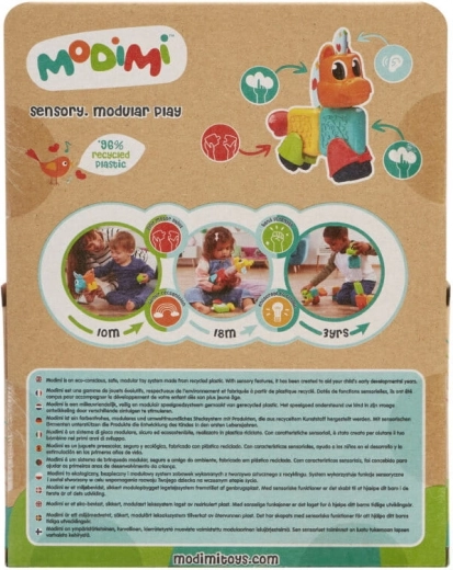 Modimi Sansestimulerende legetøj Hest Paco er et økologisk, sikkert og modulært legetøj lavet af genanvendt plast, som understøtter udviklingen af børns sanser allerede fra en tidlig alder.