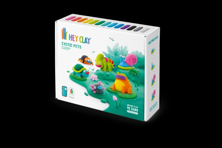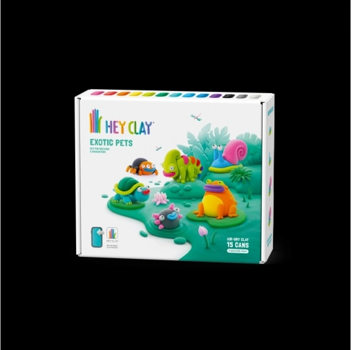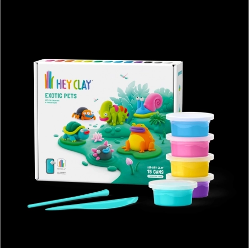 Oplev det kreative Hey Clay-sæt med temaet eksotiske dyr. I æsken finder du 15 bægre med blød modellervoks og en kode til appen, som guider dig trin for trin gennem fremstillingen af 6 figurer. Klare farver, nem formning og lufttørring på op til 24 timer gør sættet til et perfekt valg til både underholdning og udvikling af finmotorik og fantasi.