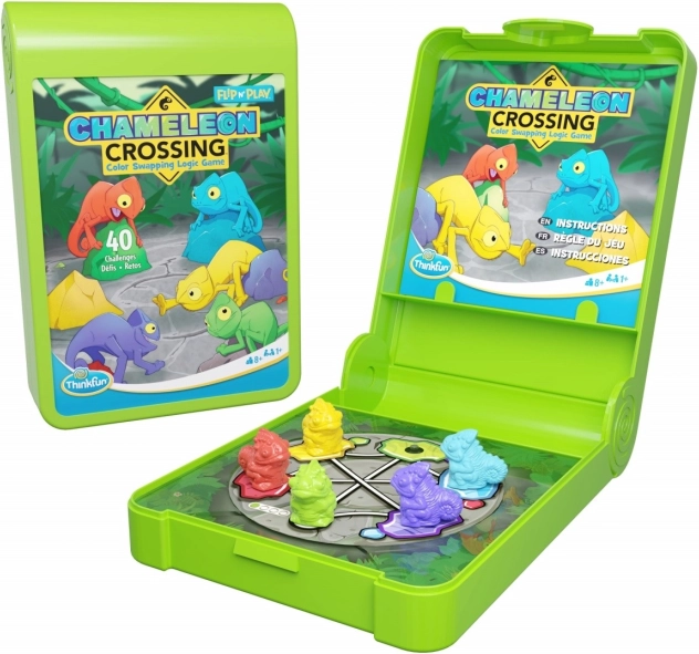 Tag på et eventyrligt eventyr med spillet ThinkFun Chameleon Crossing, hvor din opgave er at føre fem fortabte kamæleoner til den rigtige hjemsten. Spillet er designet til at være sjovt for hele familien og samtidig lære børn vigtige logiske færdigheder.