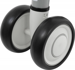 Store skumhjul dæmper ujævnheder, ridser ikke gulvet og er støjsvage – ideelle til både lejlighed og gårdhave.