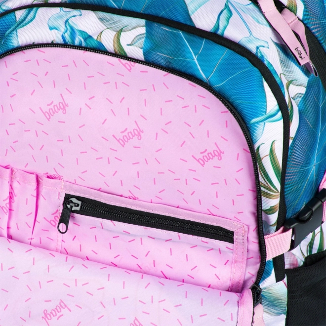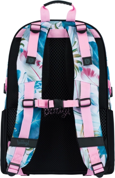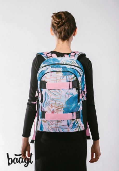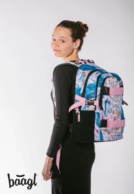 BAAGL skolerygsæk Skate Leafs forener stil og funktion. Ergonomisk formet ryg og fuldt justerbare skulder-, bryst- og sidekompressionsstropper sikrer behagelig bæring og perfekt tilpasning til kroppen. Det robuste vandafvisende materiale beskytter indholdet, og reflekterende detaljer øger synligheden i dårlig belysning.