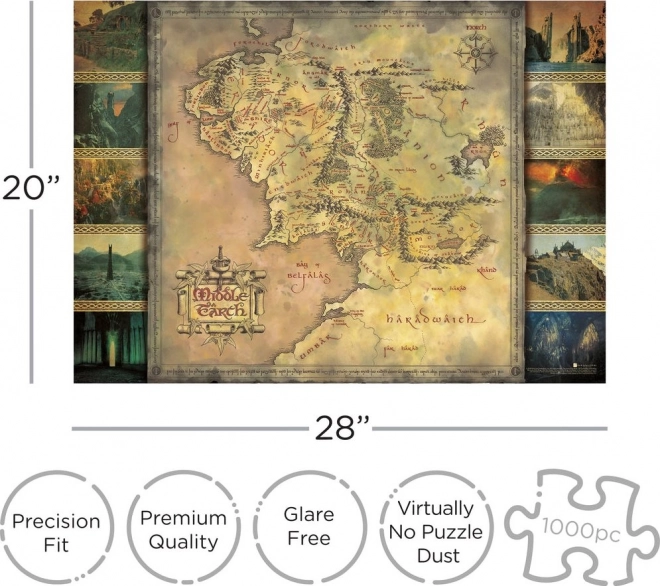 Stilfuldt puslespil med motiv af Midgårds kort, der vil glæde enhver fan af Ringenes Herre. Med 1000 præcist udskårne brikker byder det på en behagelig udfordring og samtidig afslapning under lægningen. Det færdige billede tager sig flot ud som dekoration på kontoret, i stuen eller i spillehjørnet.