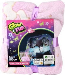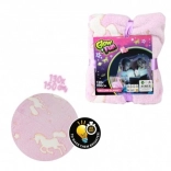 Et superblødt plystæppe med motiv af enhjørninger og stjerner, der virkelig lyser i mørket efter opladning i lys. Det er nok at udsætte det for lys et øjeblik, så får du både magisk natteglød, behagelig varme og en blød, lækker følelse i ét.