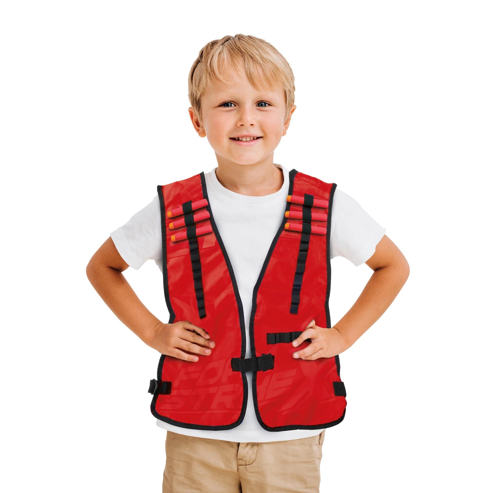 Udrust små krigere med denne taktiske børnevest, som gør det nemt at organisere skumpatroner og tilbehør under legen. Vesten er let, behagelig at have på og gør med stropper og elastiske løkker ammunitionen nem at have lige ved hånden. Ideel til både udendørs og indendørs kampe.