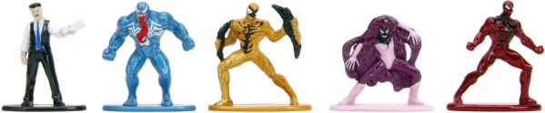 Pakken rummer både ikoniske helte og frygtede skurke: Spider‑Man, Spider‑Man 2099, Kid Arachnid, Ghost‑Spider, Spider‑Woman, J. Jonah Jameson, Venom, Phage, Agony, Carnage, The Lizard, Prowler, Morbius, Kraven the Hunter, Gray Goblin, Vulture, Mysterio og Kingpin. Sættet er en fremragende gave til både små og store fans af tegneserier og film.